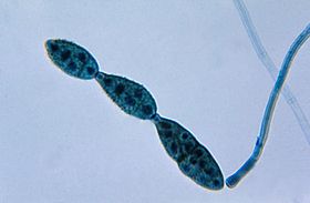 At least 20% of agricultural spoilage is caused by Alternaria species; most severe losses may reach up to 80% of yield, though.[2] Many human health disorders can be caused by these fungi, which grow on skin and mucous membranes, including on the eyeballs and within the respiratory tract. Allergies are common, but serious infections are rare, except in people with compromised immune systems. However, species of this fungal genus are often prolific producers of a variety of toxic compounds. The effects most of these compounds have on animal and plant health are not well known. The terms alternariosis and alternariatoxicosis are used for disorders in humans and animals caused by a fungus in this genus.